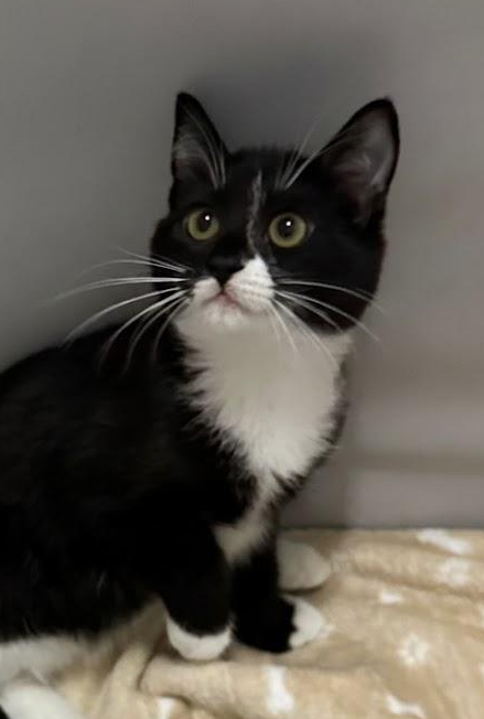Ash is a sweet little girl who was dropped off at the shelter late one night along with her four siblings — scared, tiny, and unsure of the world. Despite her rough start, Ash’s gentle heart shines through. She’s a curious, affectionate kitten who loves soft blankets, quiet cuddles, and playtime with her siblings.