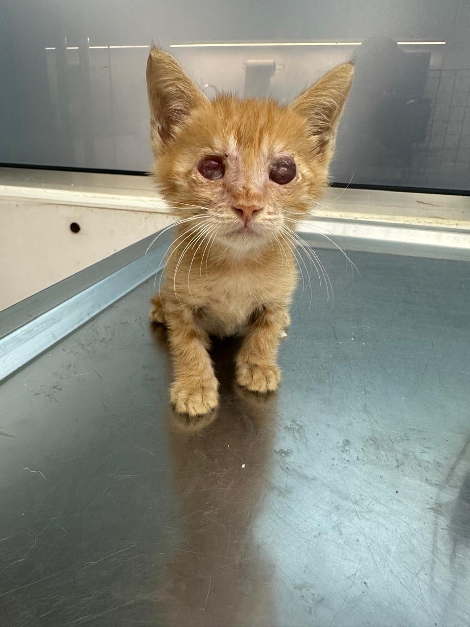 Ash is a sweet little girl who was dropped off at the shelter late one night along with her four siblings — scared, tiny, and unsure of the world. Despite her rough start, Ash’s gentle heart shines through. She’s a curious, affectionate kitten who loves soft blankets, quiet cuddles, and playtime with her siblings.